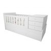 Convertible a una cama de 1 plaza, mesa de luz con 3 cajones y mueble de guardado desmontables.